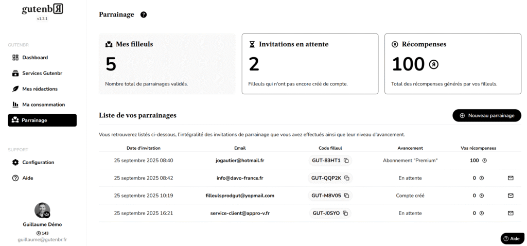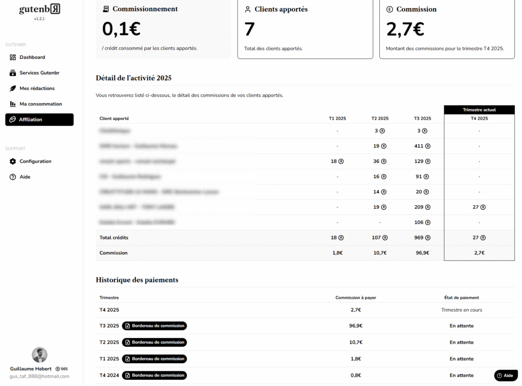 Tout est désormais accessible depuis la rubrique “Affiliation” de votre compte Gutenbr.